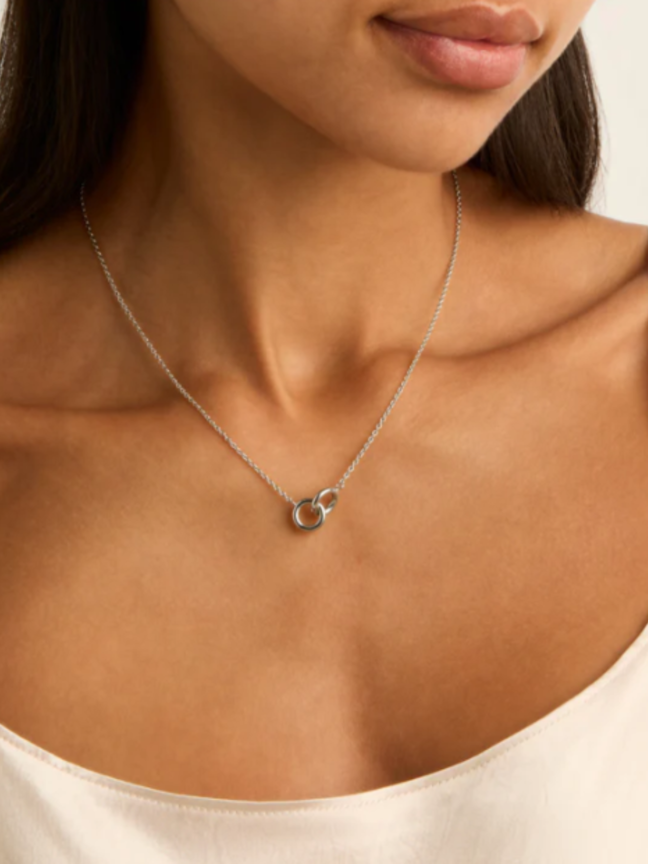 This dreamy necklace gifts you a stunning canvas for the stories and connections that shape your life. The delicate trace chain embraces two interlocked rings, symbolising the beauty of human relationships. Each creation is expertly handcrafted by Najo Thai silversmiths.