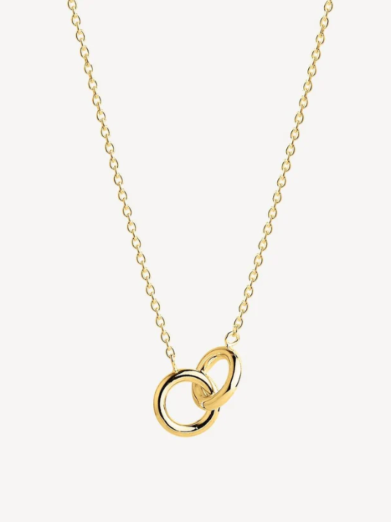 - Two interlocked 10mm rings attached to a 1mm wide trace chain