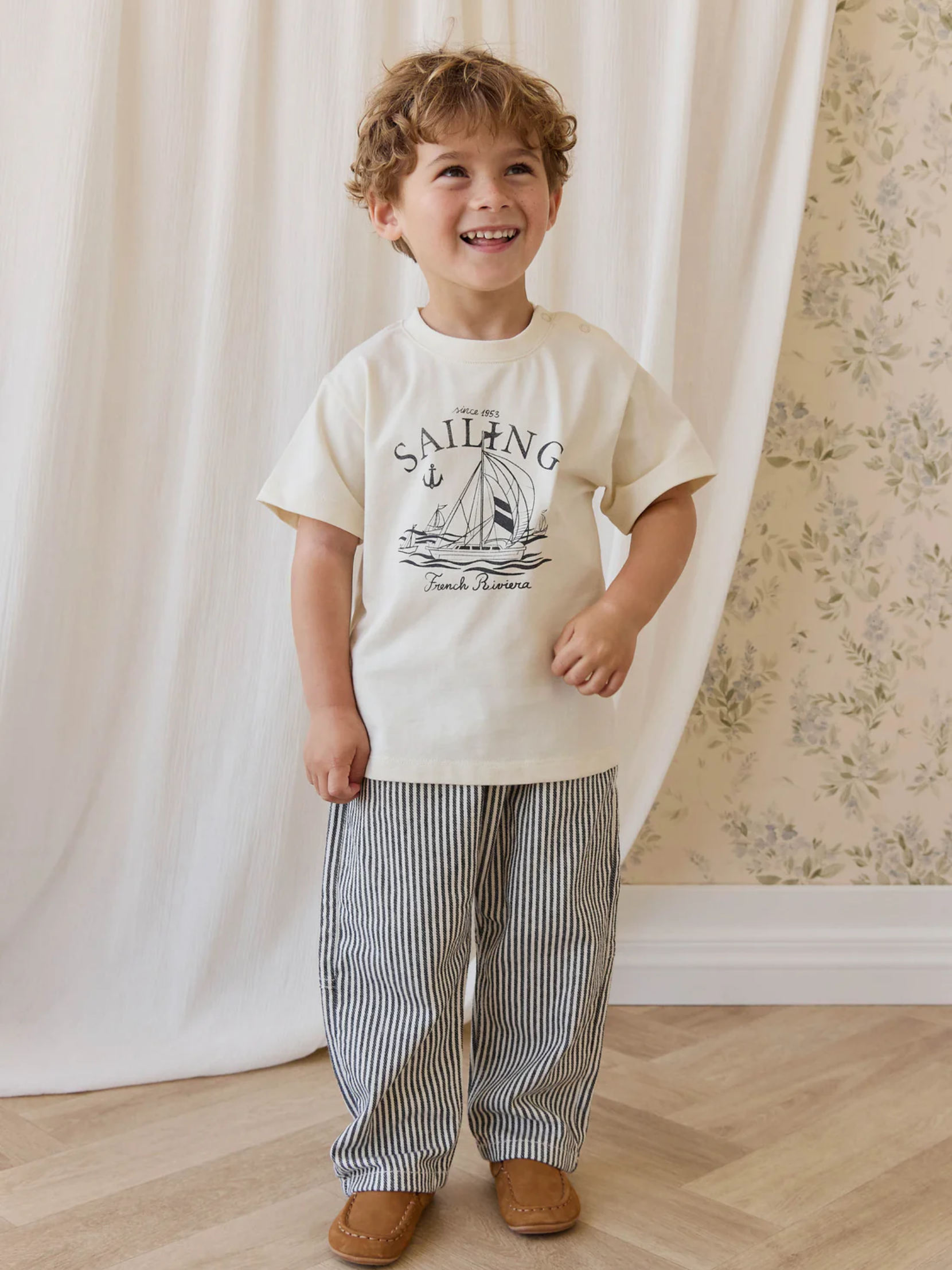 The Bjorn Tee is a stylish and versatile piece for your little one’s wardrobe. Featuring a classic sailor print this tee is perfect for everyday wear with a touch of timeless charm.