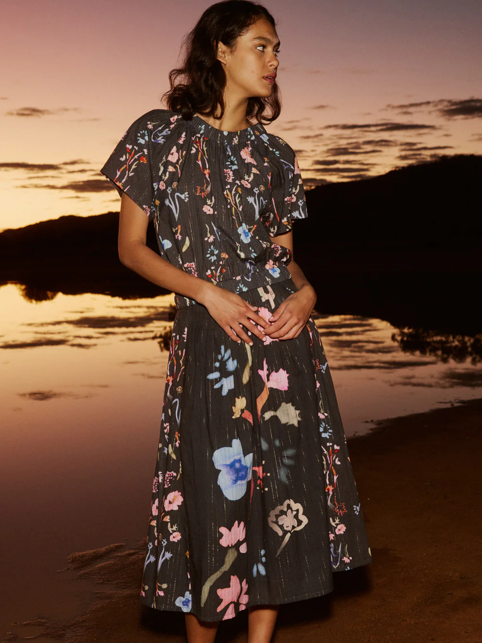 Featuring an exclusive watercolour charcoal print by Nancybird founder Emily Wright. Designed with an elastic waistband and pockets.