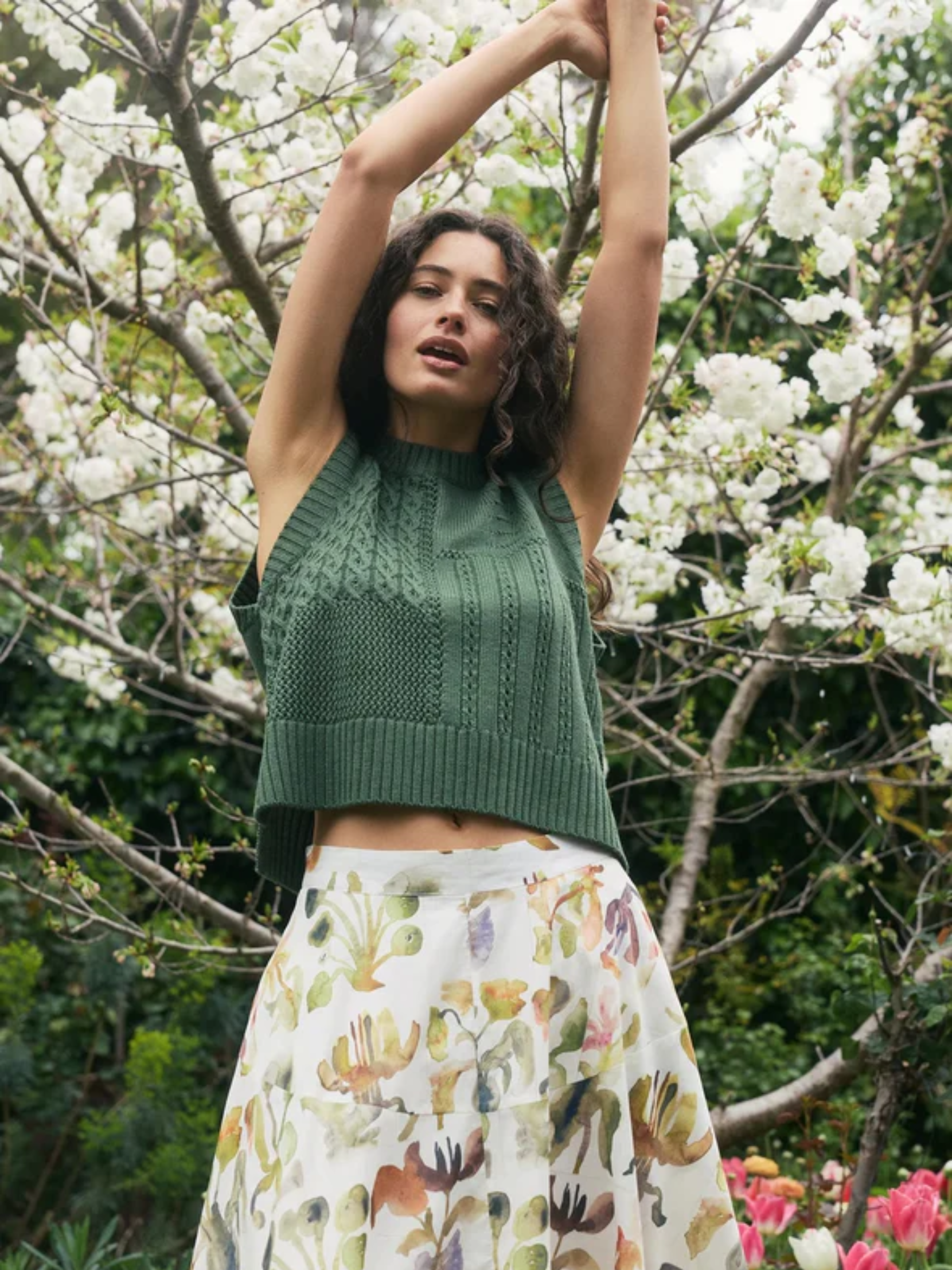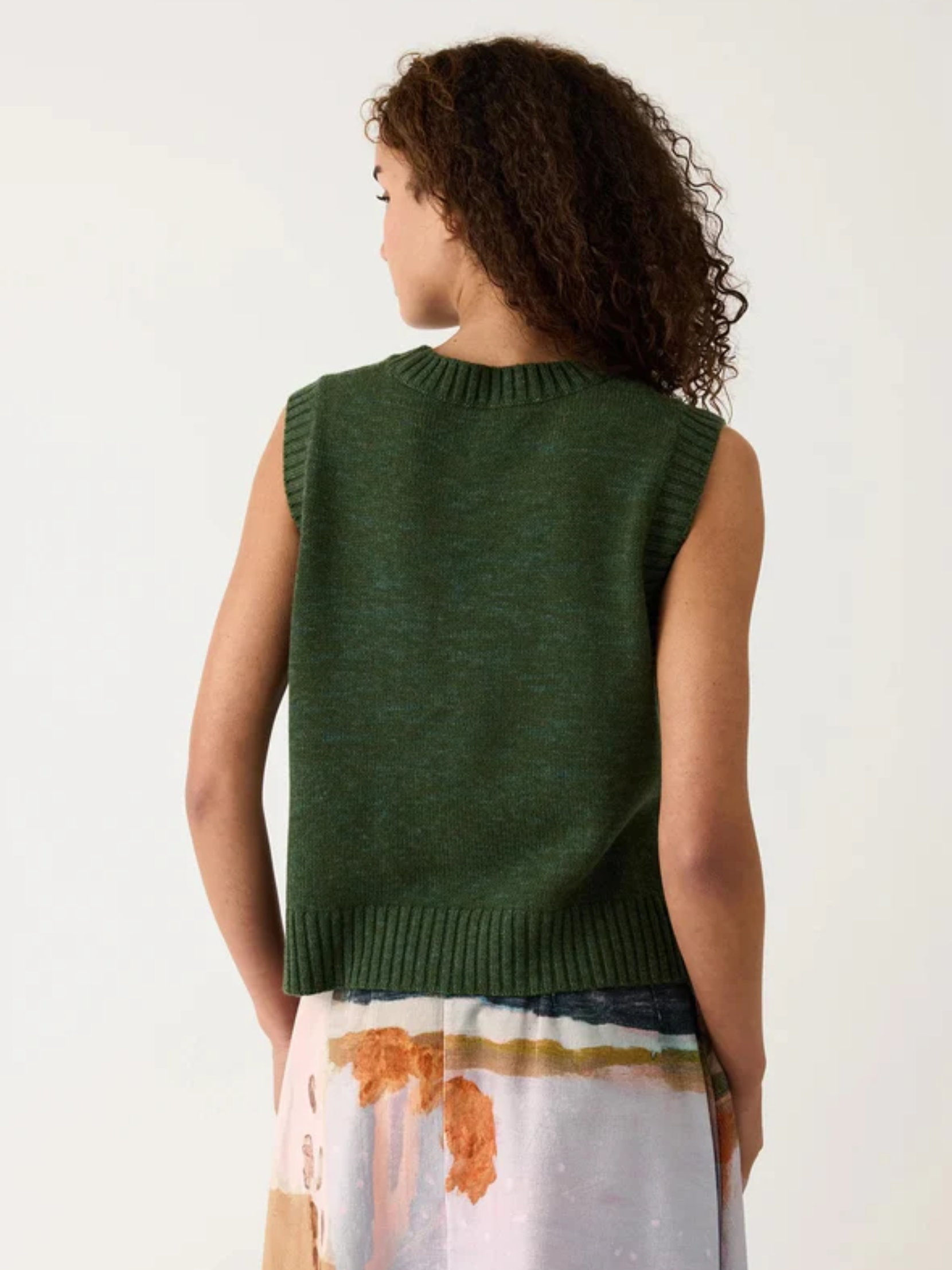 The Billie Cable Vest in fine soft wool with its patchwork of knitted details is a classic style perfect for layering. Featuring a ribbed neckline, cuff and hem, the Billie Cable Vest offers a true fit, no need to size up or down, with a fine melange fleck yarn composition.