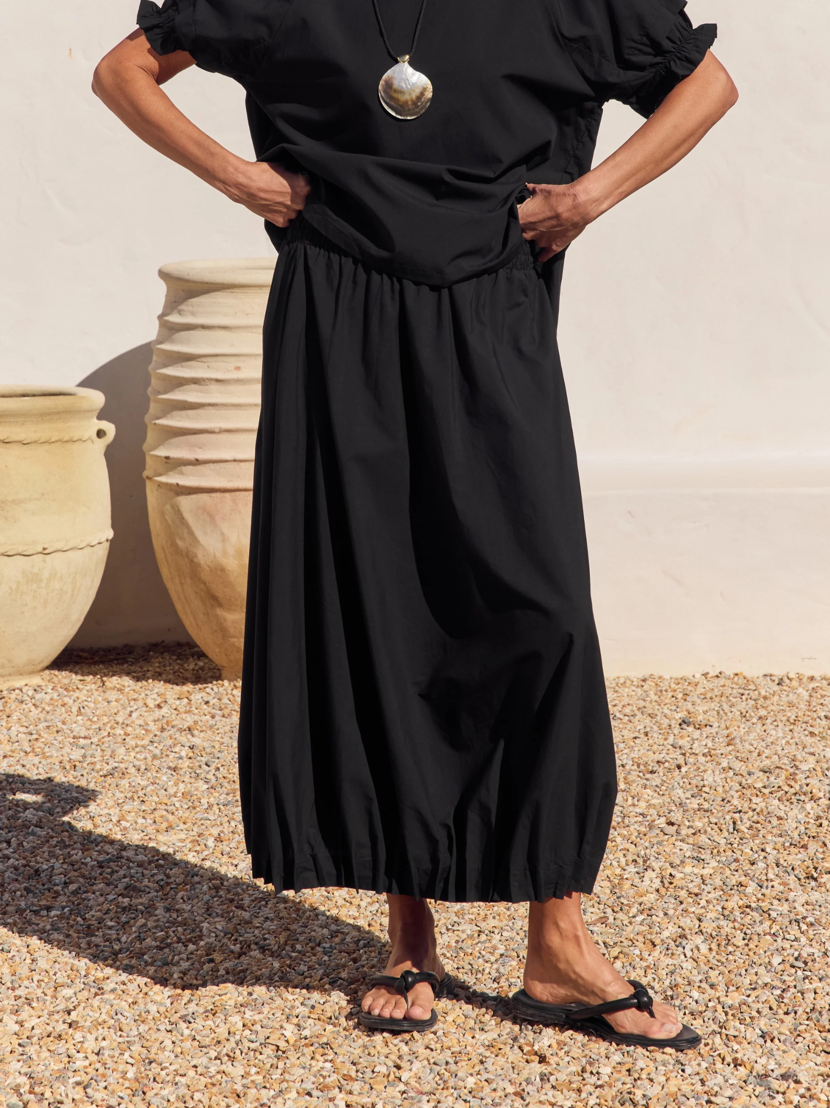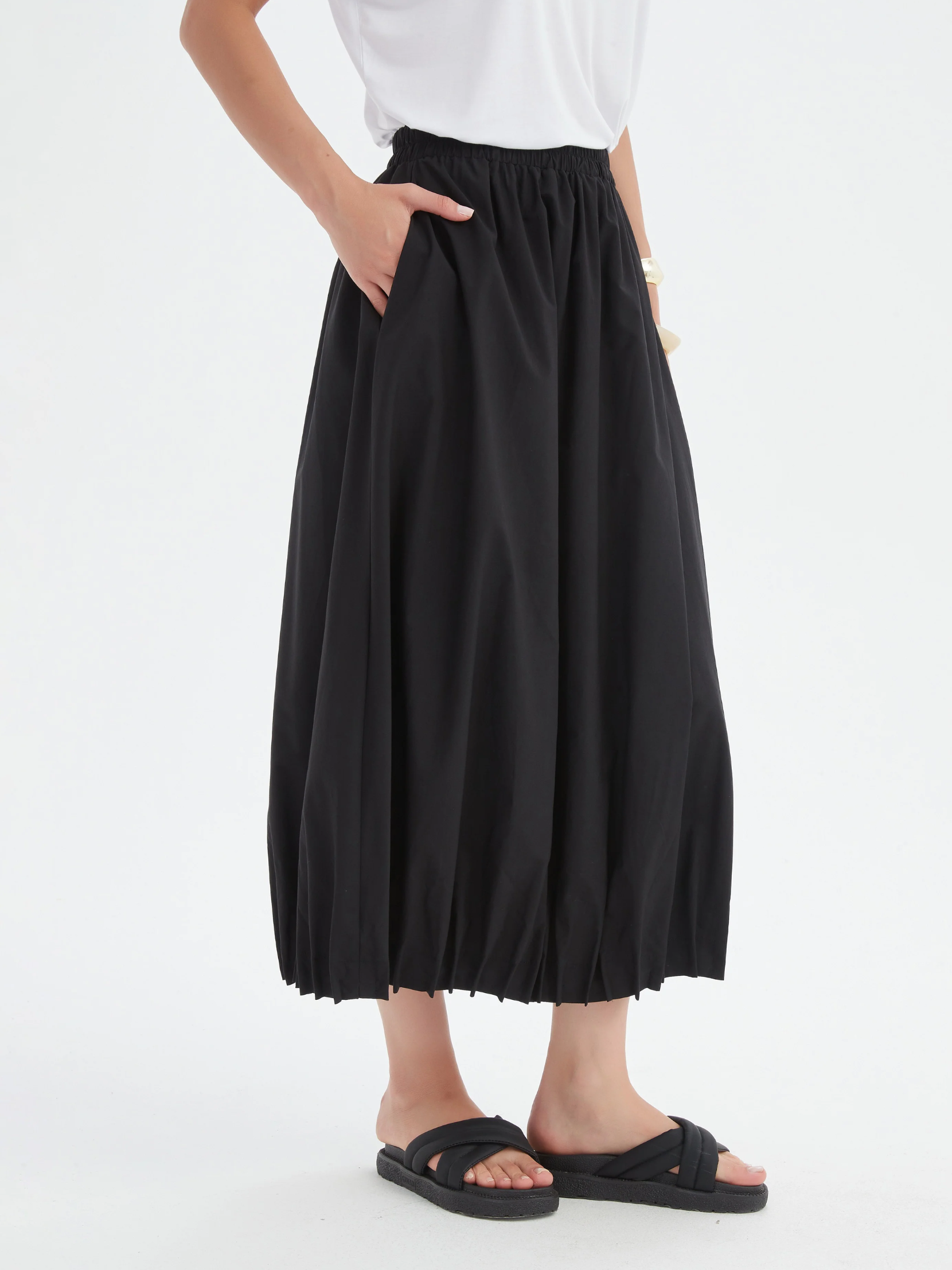 The Pin Tuck Hem Skirt is a versatile midi crafted from a lightweight cotton/lyocell blend. Its elasticated waistband and side pockets combine comfort with practicality, while the delicate pin tuck hem adds an air of elegance while shaping the silhouette. Designed to move effortlessly with every step, it pairs beautifully with tees and shirts for an elevated everyday look