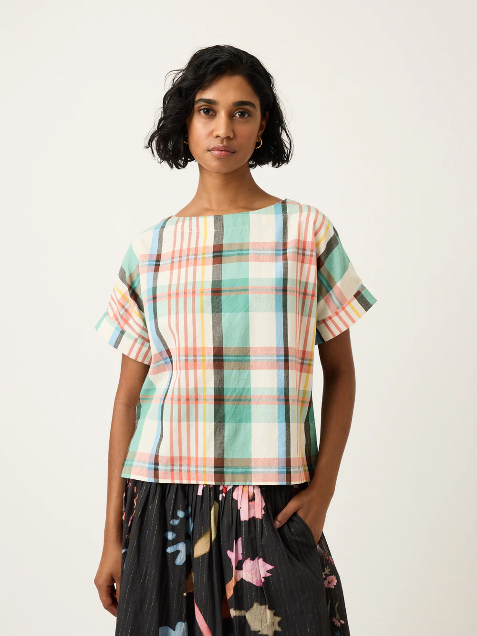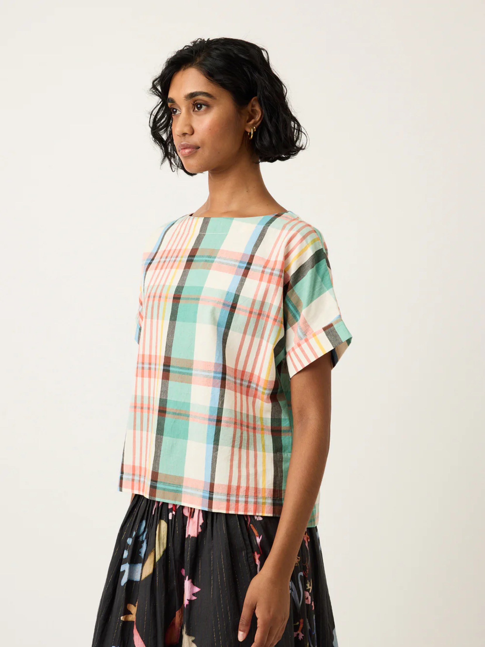 The Dolman Top is a versatile summer staple, made with Nancybird's designed artisan woven cotton. Featuring double cuffs, a stepped hem and boat neckline, designed for a slightly looser fit.