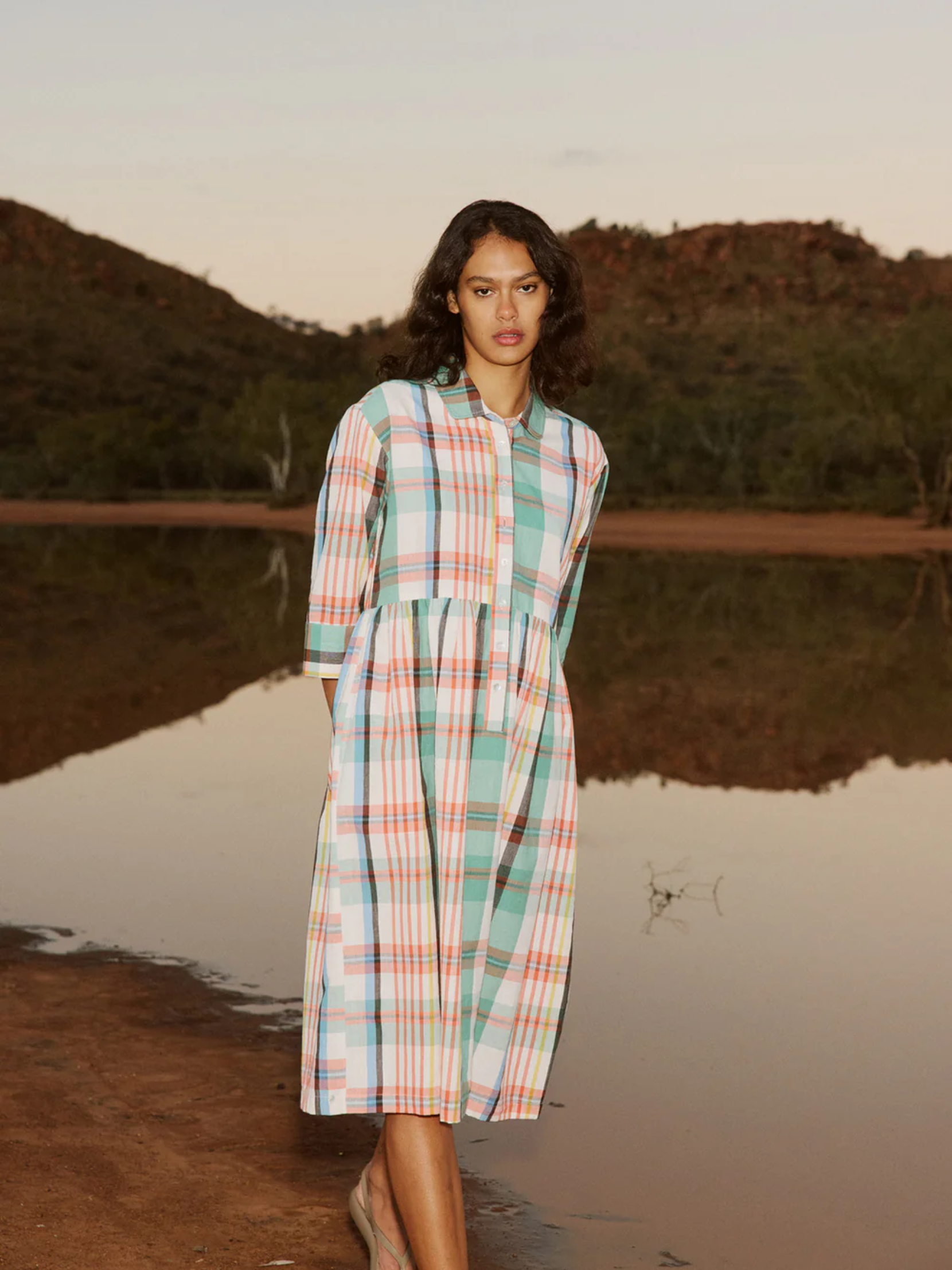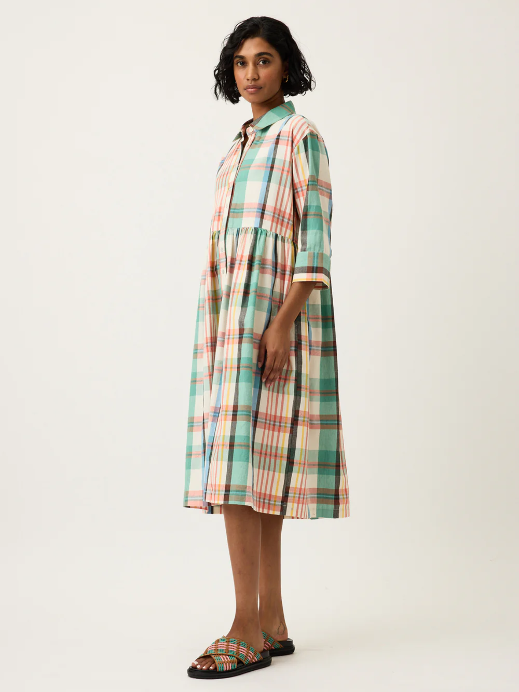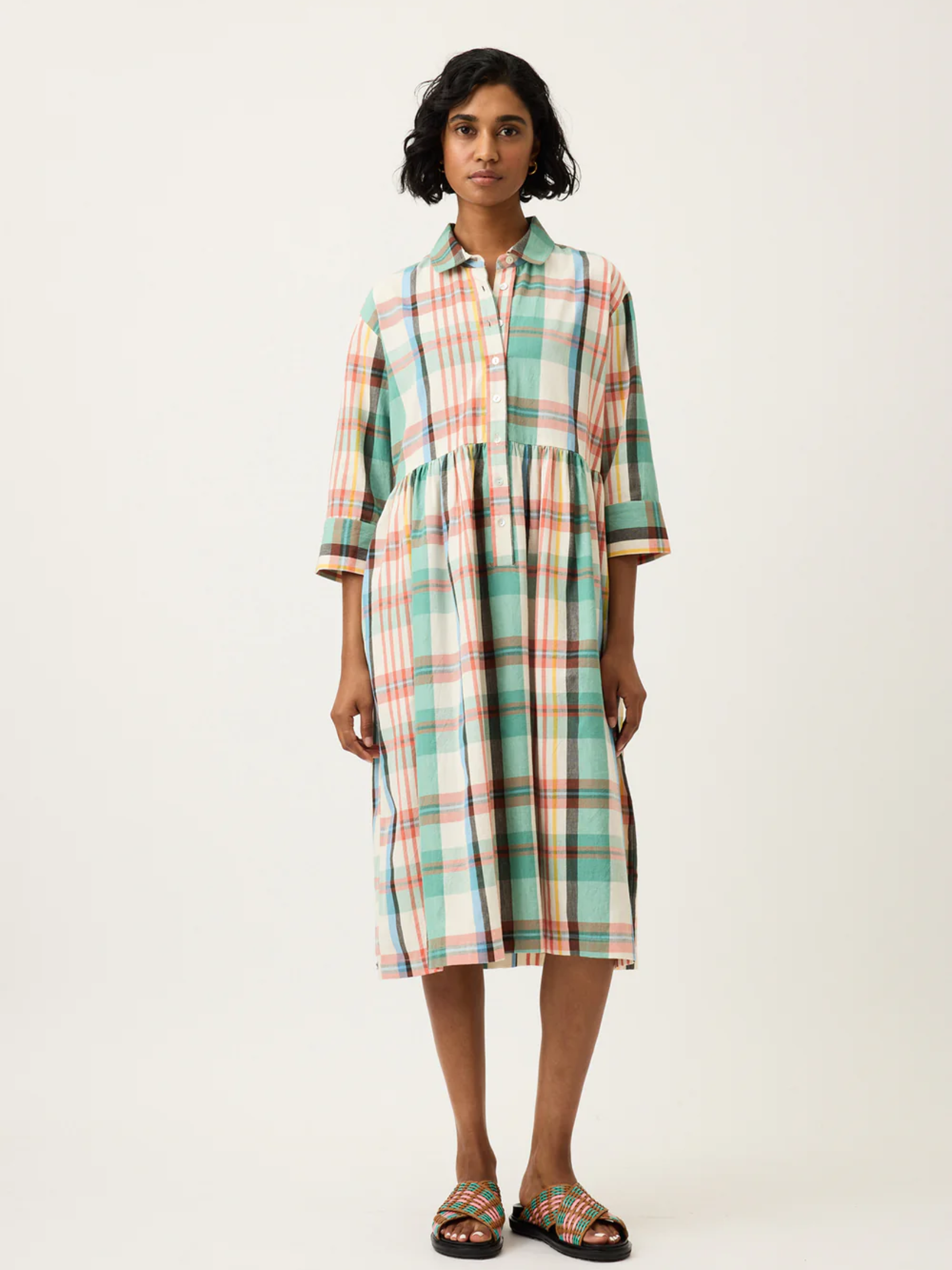 Crafted from Nancybird designed artisan handwoven cotton, the Mel Dress combines elements of the best-selling silhouettes with the addition of 3/4 length sleeve for comfort and ease. Featuring a flattering midi length with a drop shoulder and relaxed fit.