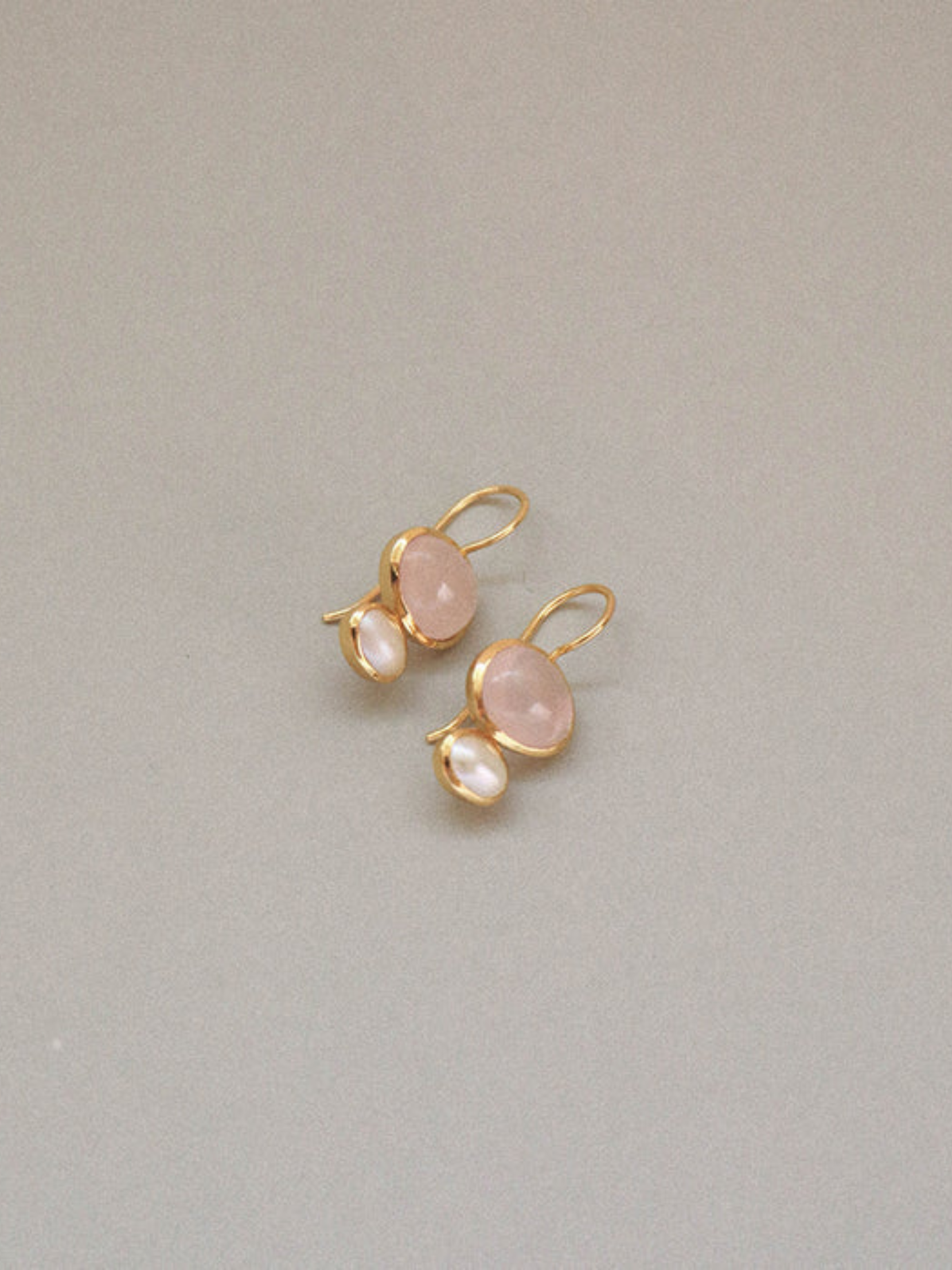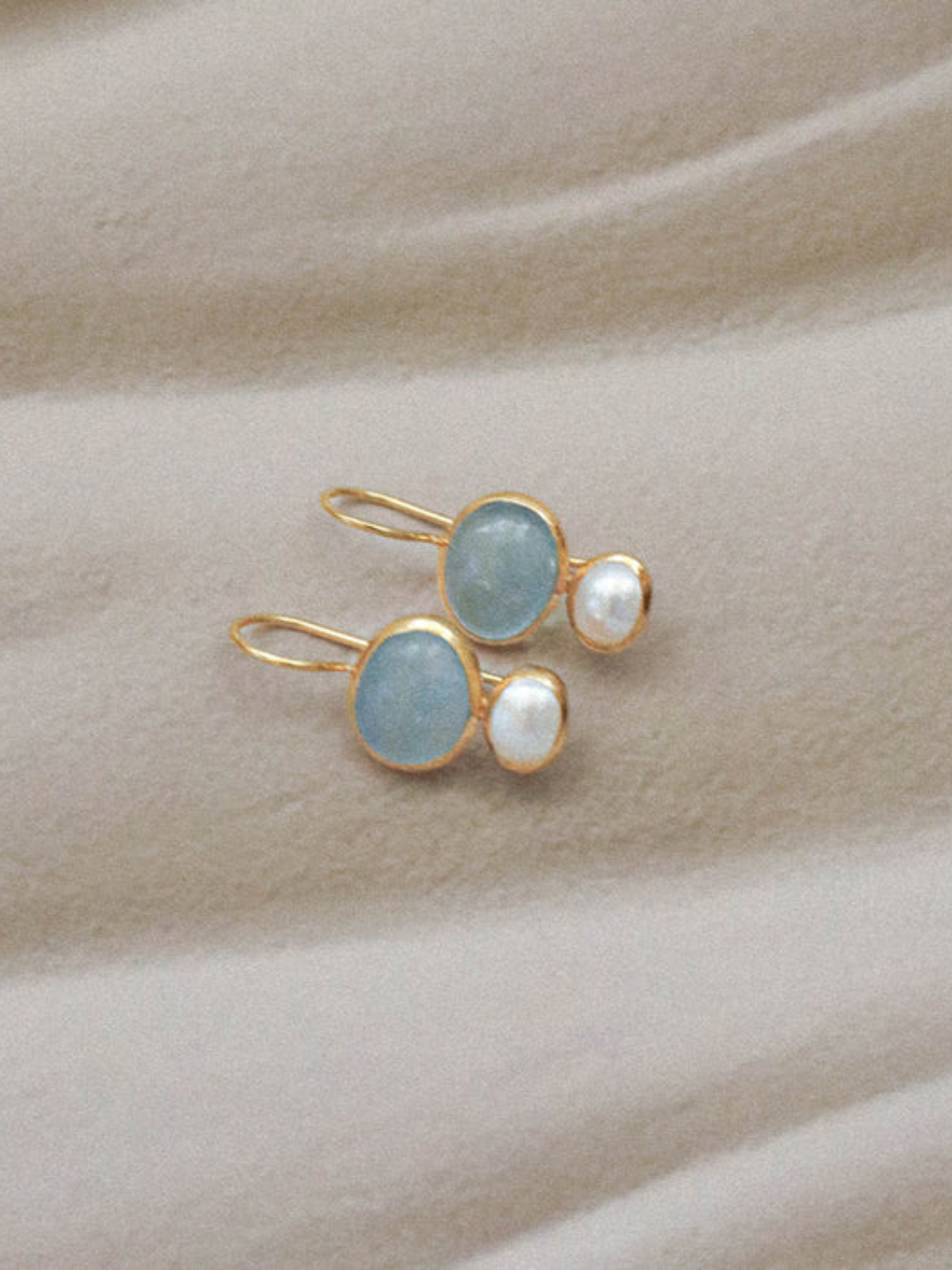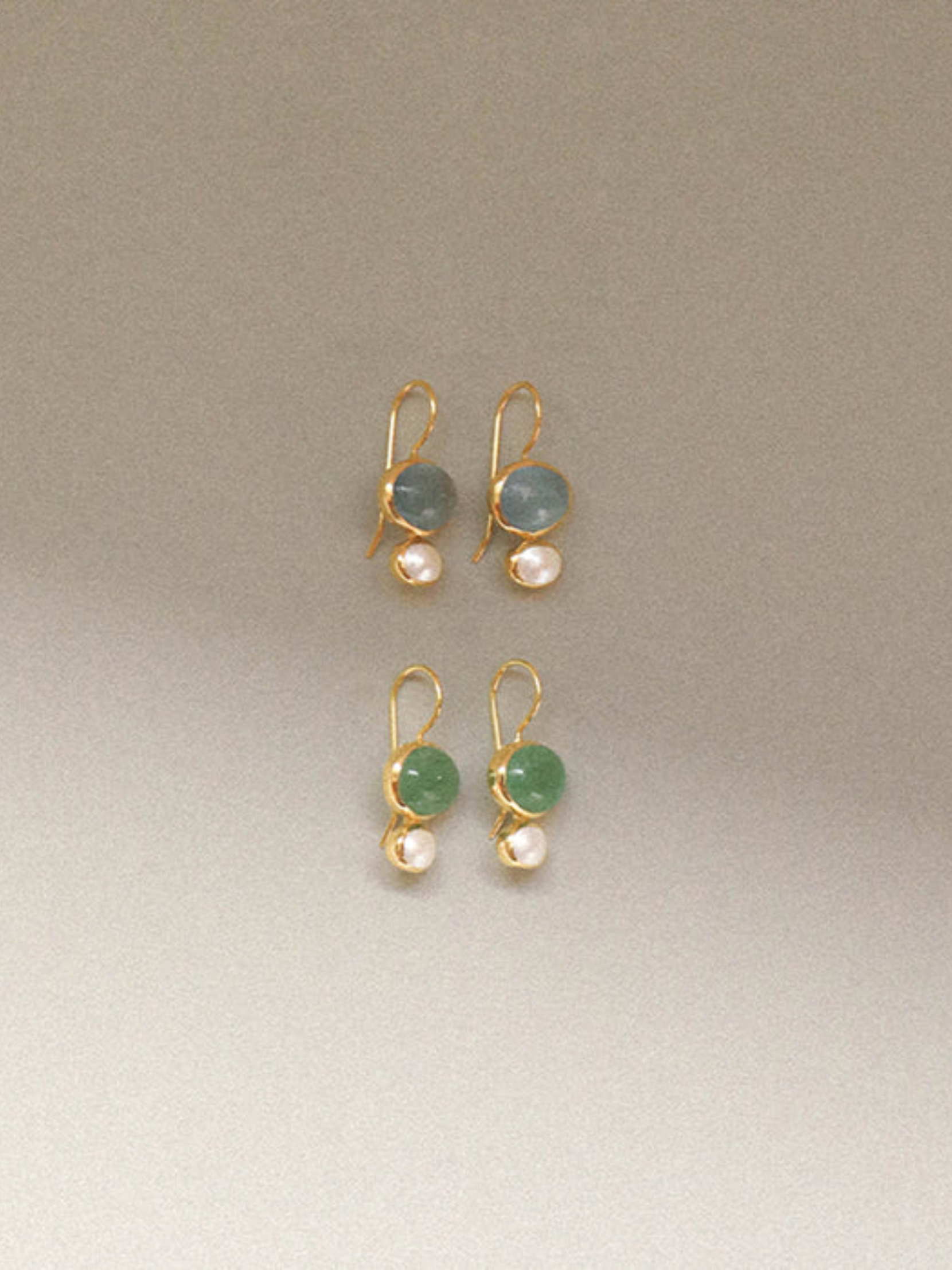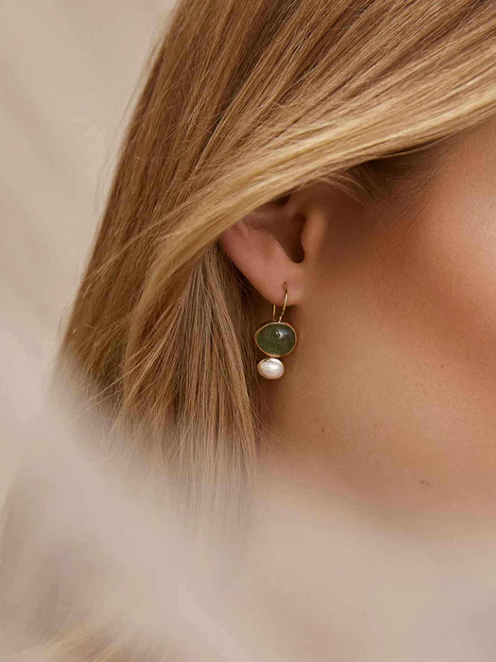 The Cubism Earrings by Bianc feature a drop earring of an oval shaped gemstone of your choice and a Freshwater Pearl all set in 18k gold plated sterling silver.