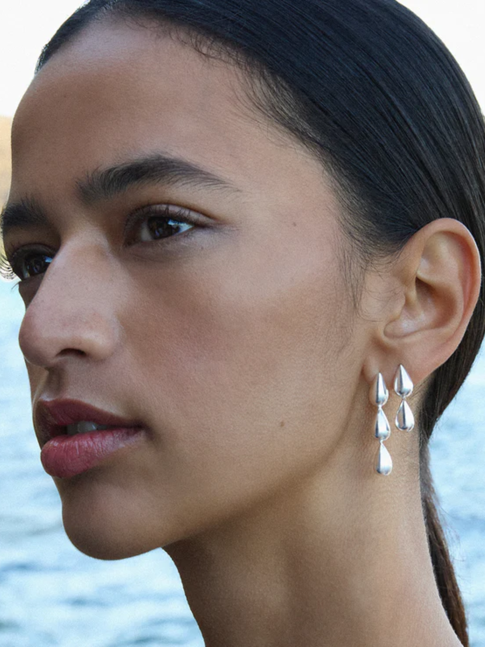 A love letter to the sea, these sculptural earrings are inspired by the sensation of ocean droplets lingering on sun-kissed skin. Their handcrafted double-drop links flow from your earlobes, capturing the poetry of water in motion. Transcending dress codes and seasons, they honour Australia’s island of beaches and the power of water to refresh and soothe the soul.