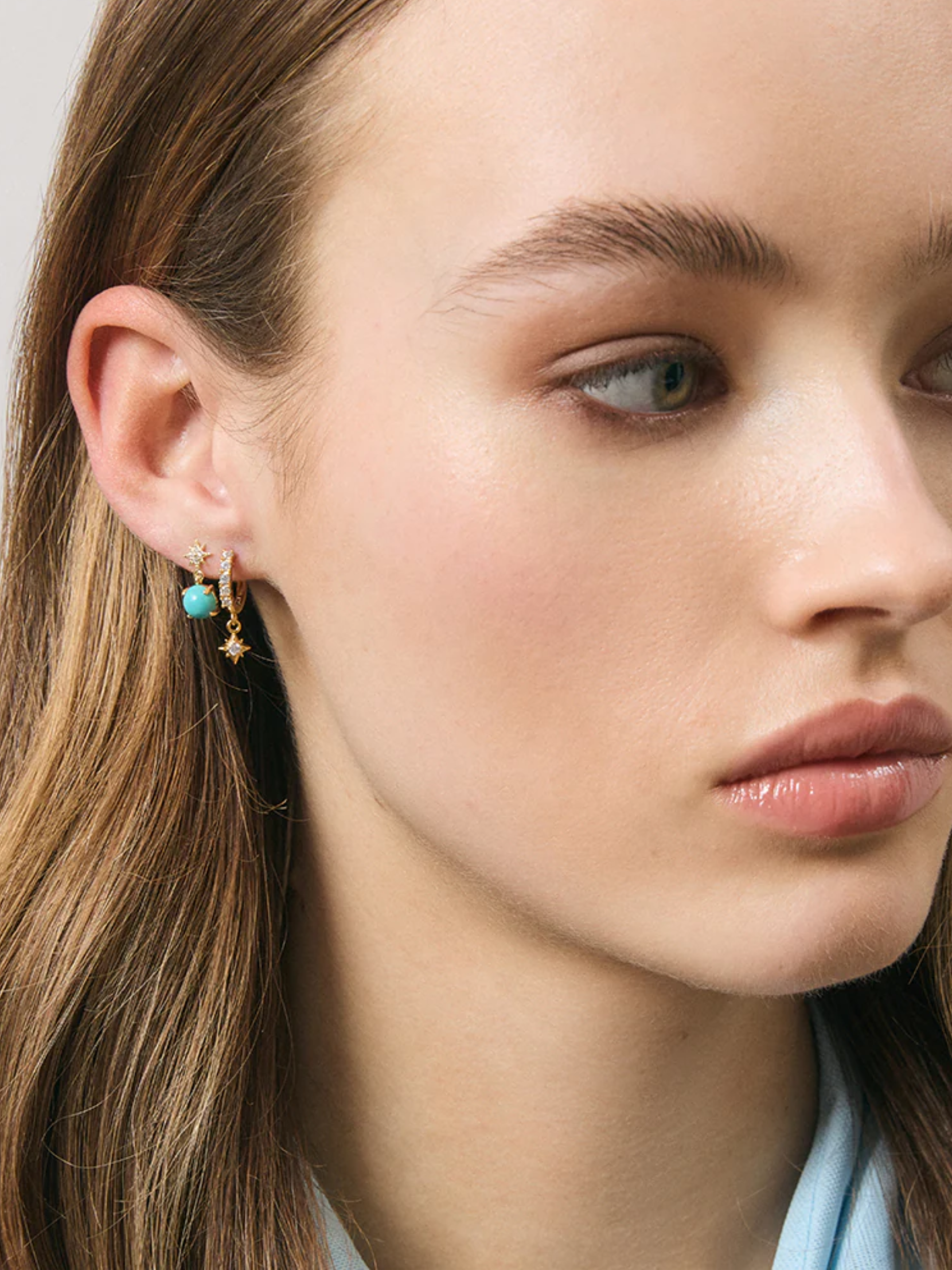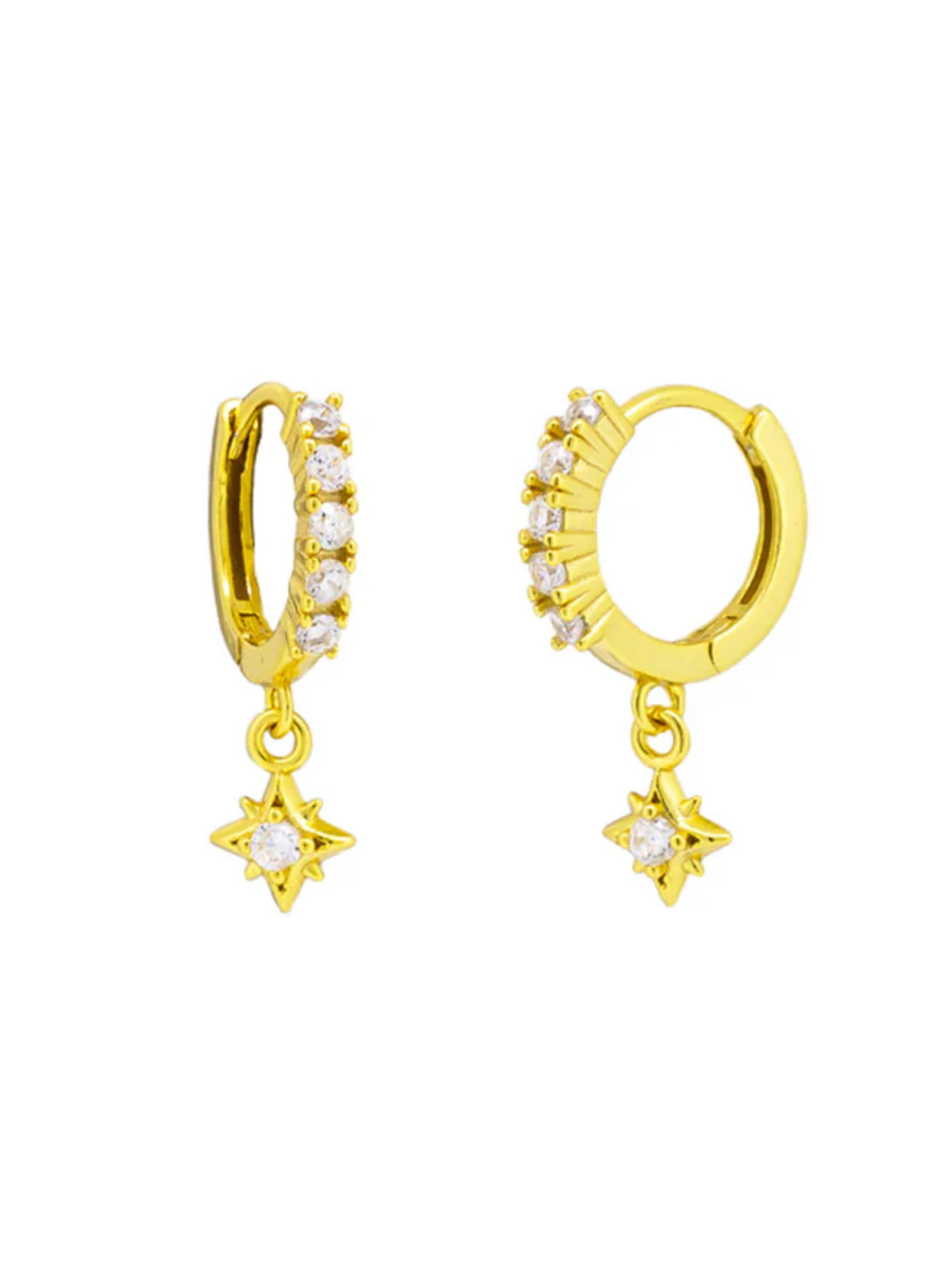Effortlessly elevate your wardrobe with the Rosette Sleepers. Featuring a small hoop adorned with cubic zirconia crystals with a hanging star pendant, they are a stunning style ideal for stacking.