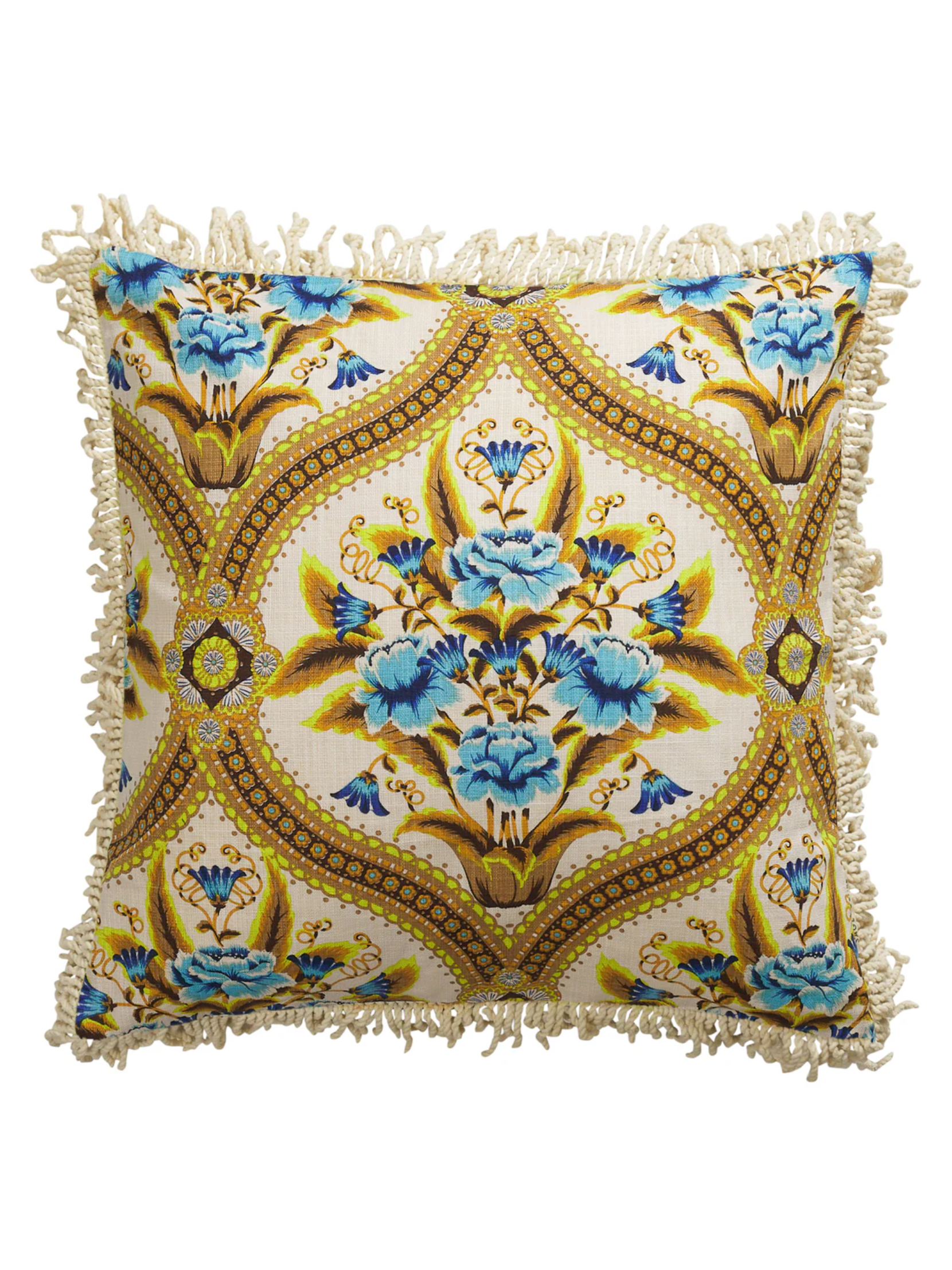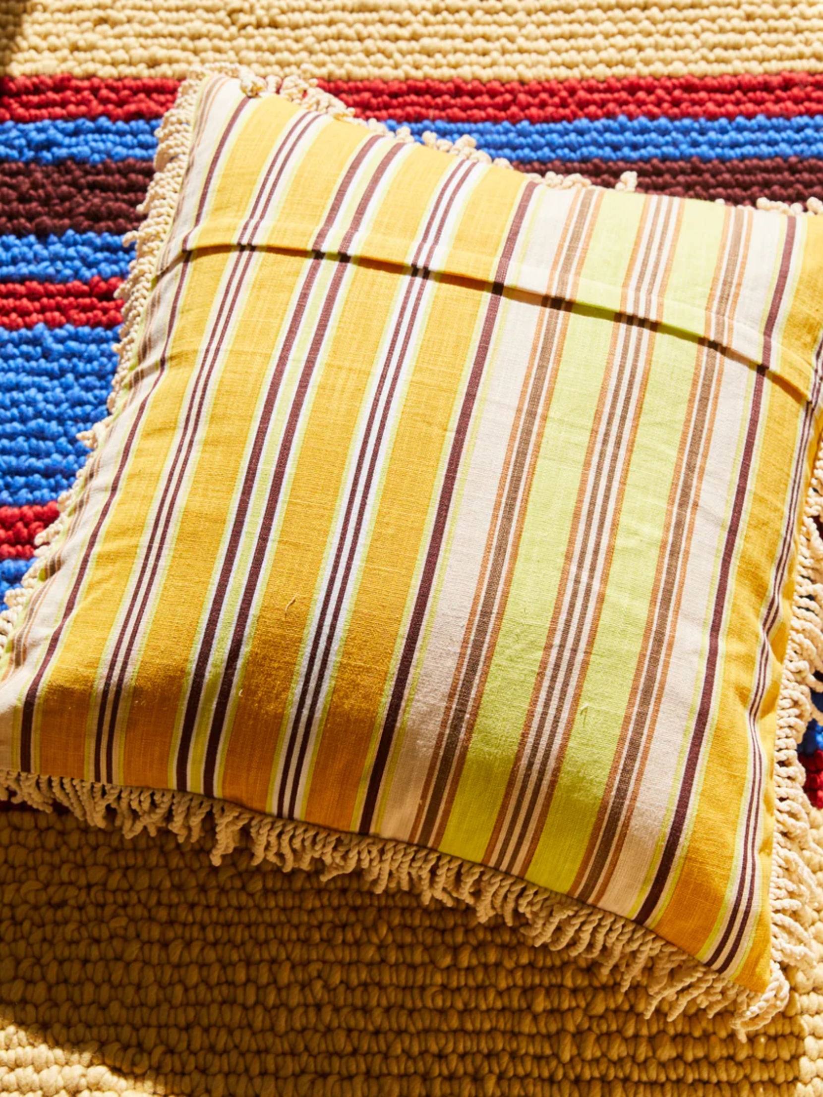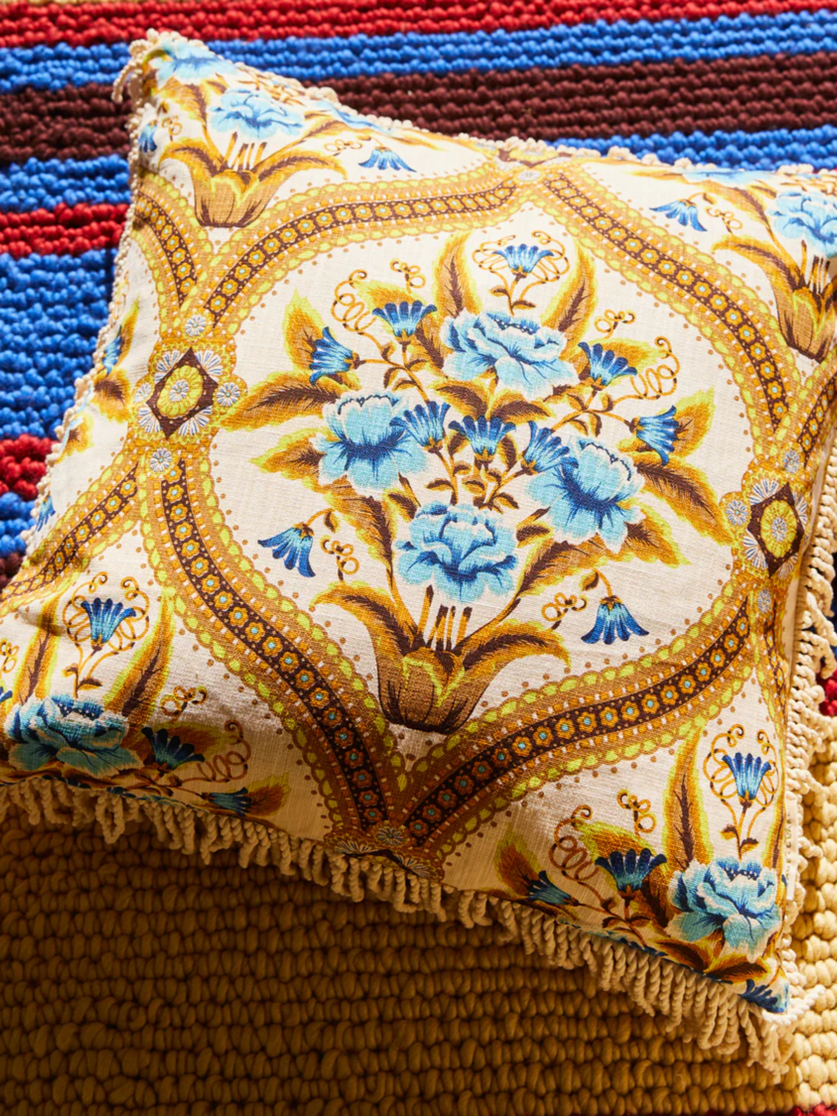 - Corded fringe trim adds a retro, textural touch