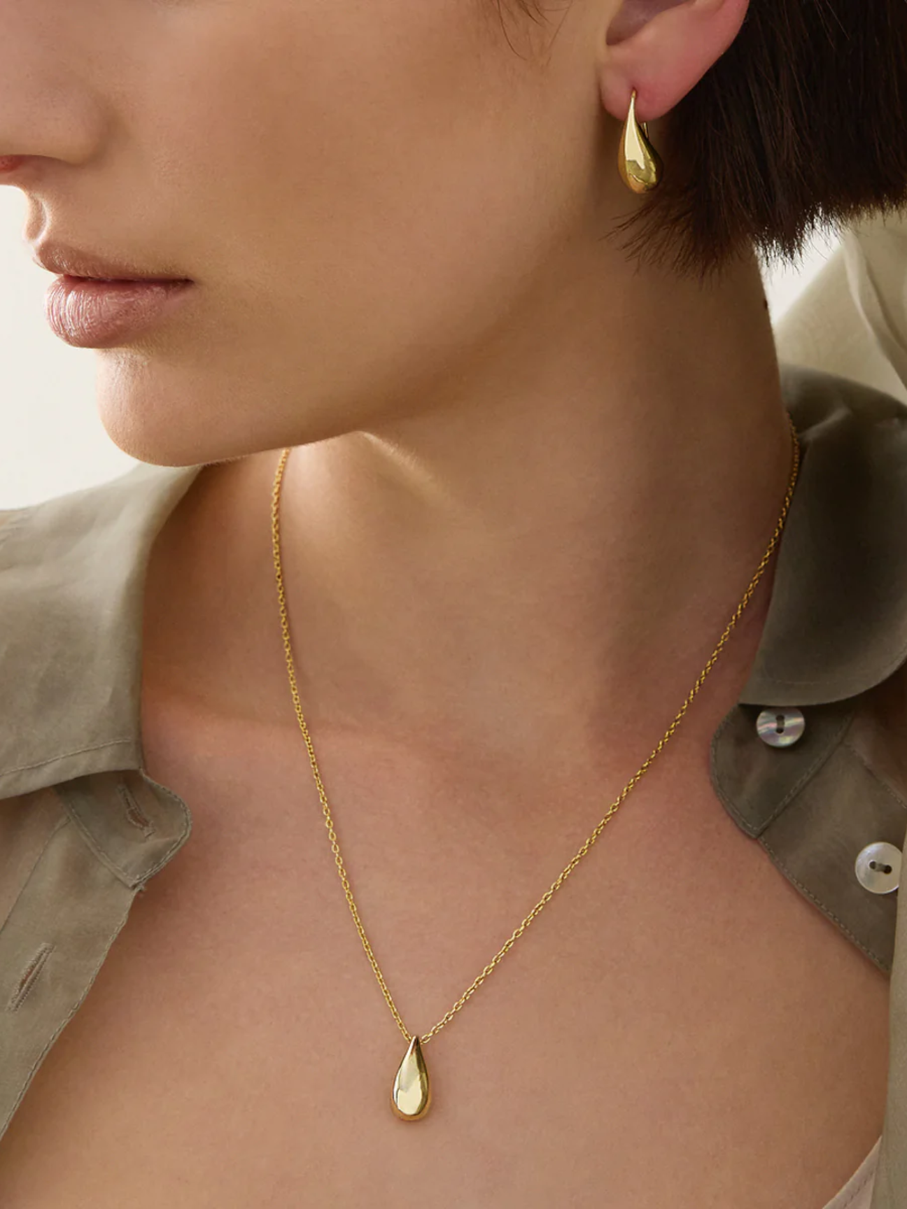 Channelling an elemental sensibility, the Eau Necklace honours the sculptural beauty and revitalising spirit of Paris’s iconic Wallace Fountains. Her organic droplet appears suspended in air, creating a strikingly fluid aesthetic.