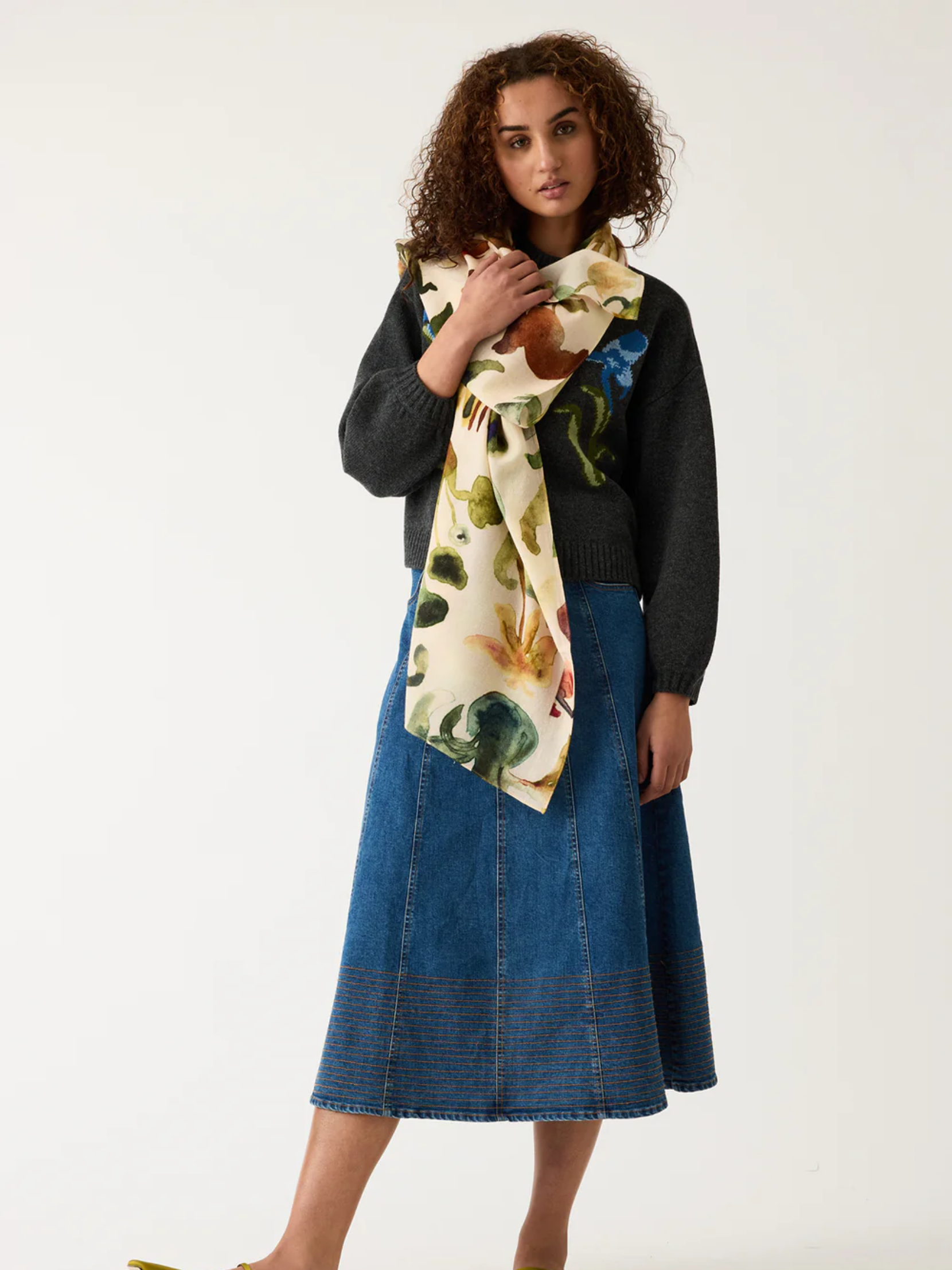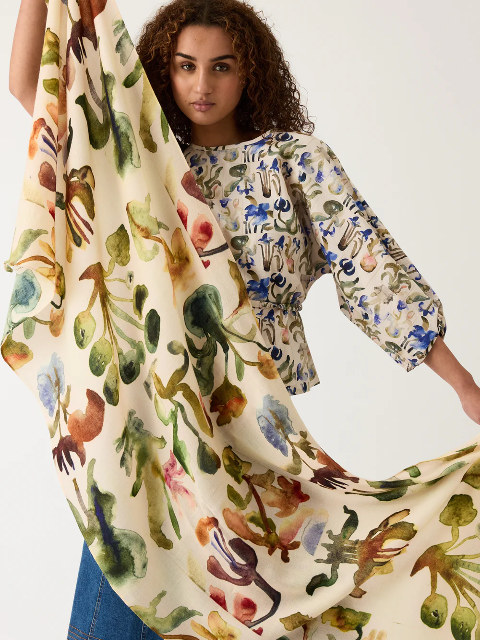 Keeping you warm with the softest wool crepe. Featuring the artwork of Nancybird’s founder Emily Wright.