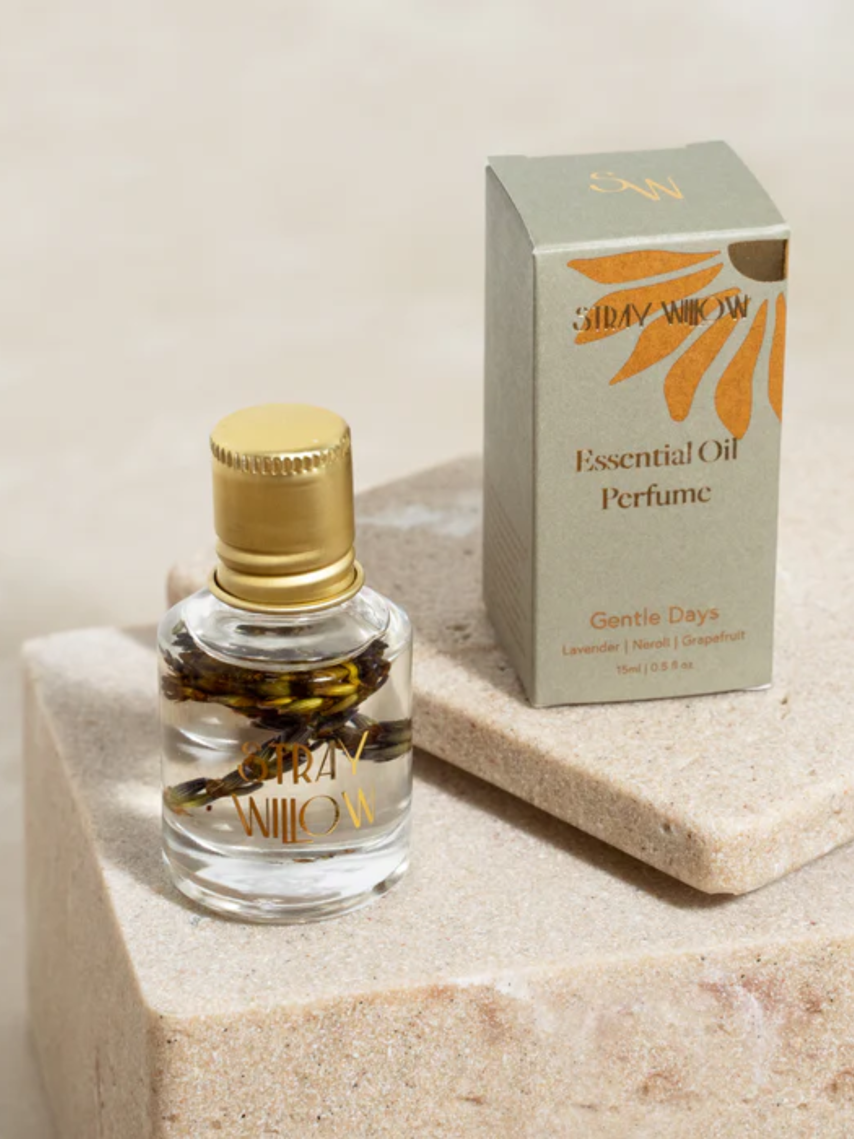 Gentle Days: Features a floral-citrus blend of Lavender, Neroli, Bergamot, and Grapefruit essential oils gently grounded with warm Vanilla. Blended in a base of nourishing Apricot Kernel, Coconut, and Sunflower Oils.