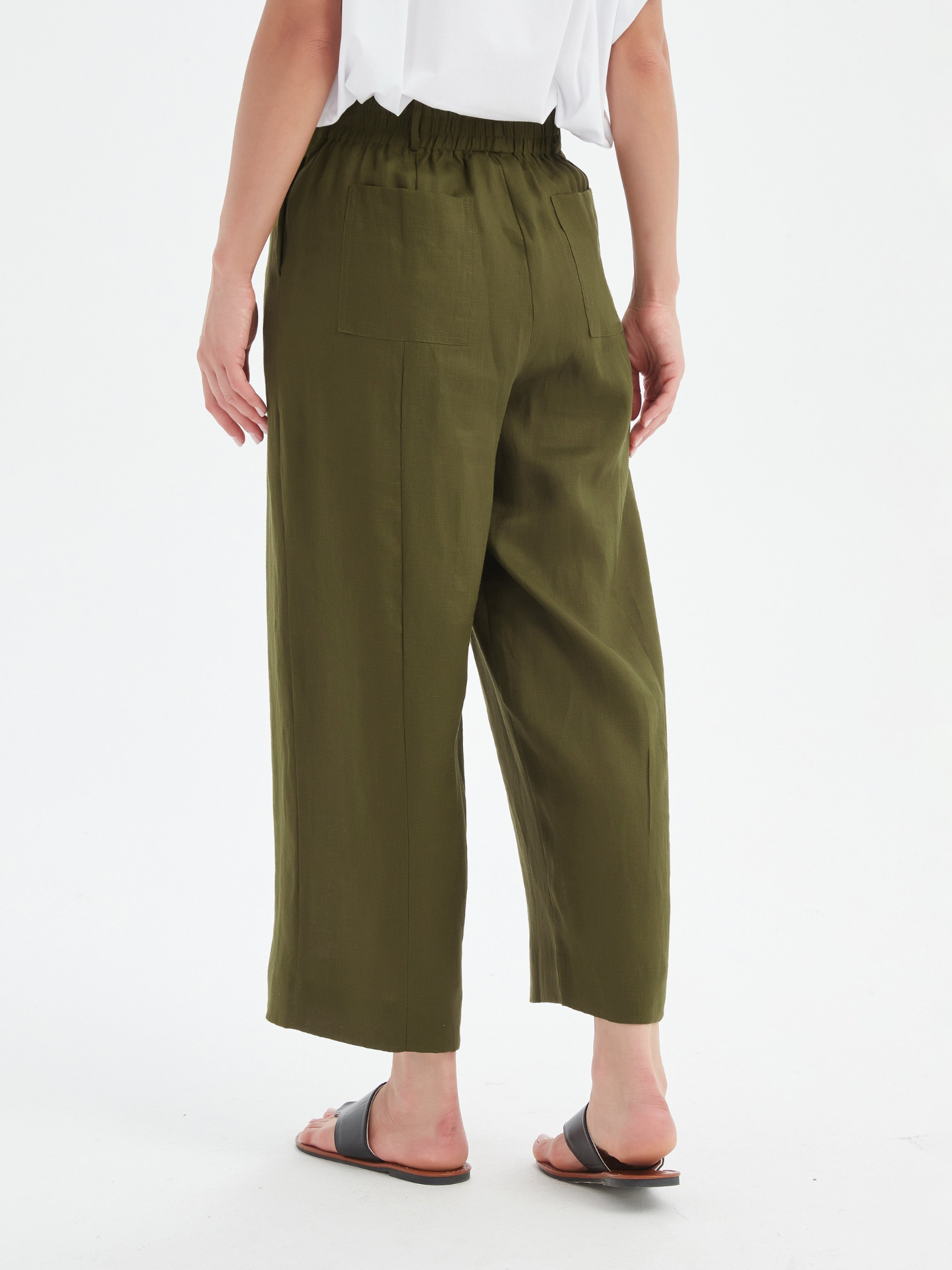 Relaxed yet refined, the Patch Pocket Easy Pant brings effortless polish to your everyday dressing. Crafted from 100% French Linen, this wide-leg style features practical patch pockets, subtle seam detailing, and a flattering high-rise fit. Designed for comfort with an elastic back waistband, belt loops, and a button-and-zip fly closure, this versatile piece pairs beautifully with simple linen tops for an elevated off-duty look.